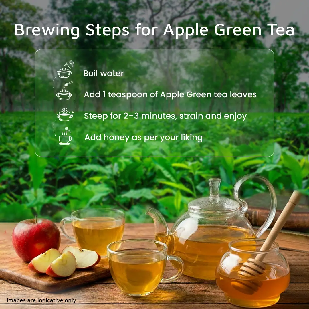 Whether you’re looking for a mid-day refresher, a soothing sip after meals, or just a clean, guilt-free drink, Apple Green Tea fits right in. Best enjoyed hot or iced, with water.