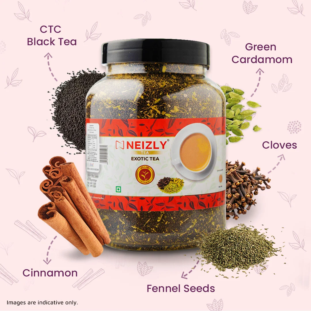 Neizly Exotic Tea Mix is a flavour-packed blend, perfect for those who enjoy their chai with a natural hint of sweet and spice.