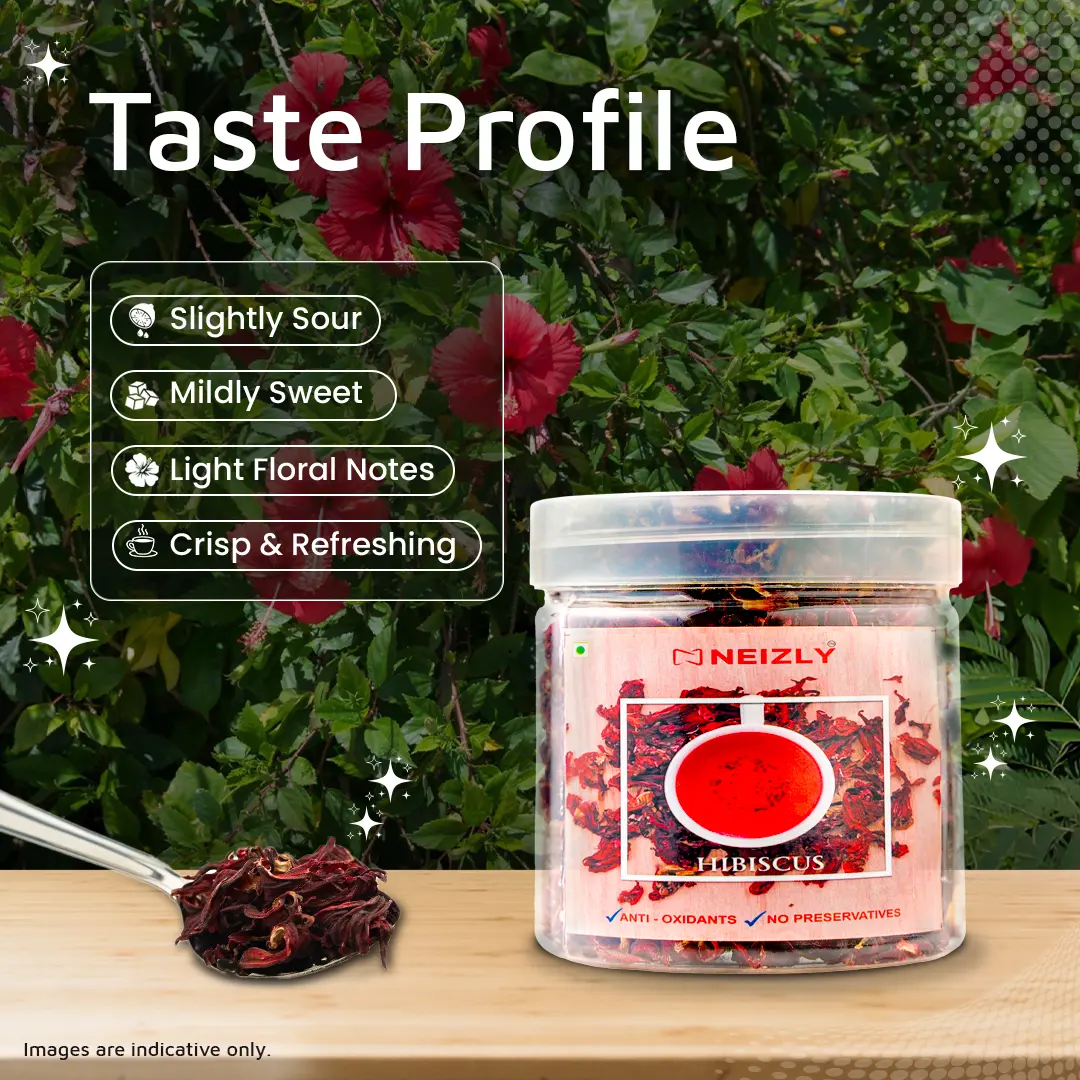 Neizly Hibiscus Tea is a vibrant herbal tea made from dried Hibiscus Sabdariffa/Roselle – a naturally caffeine-free, refreshing tea packed with flavour in every sip.